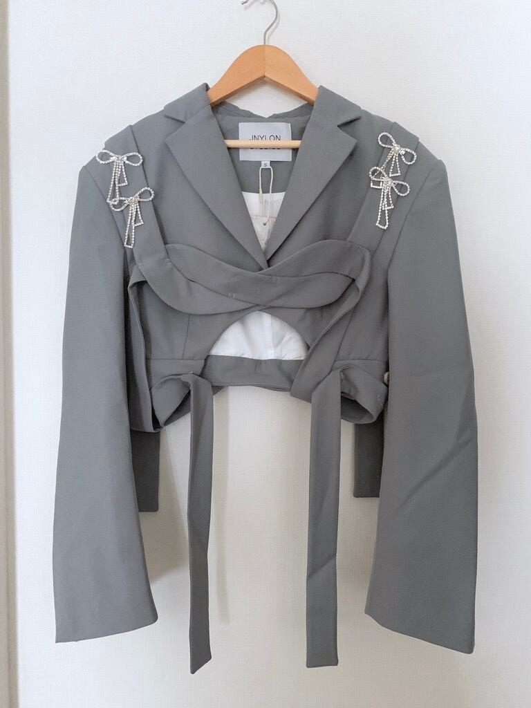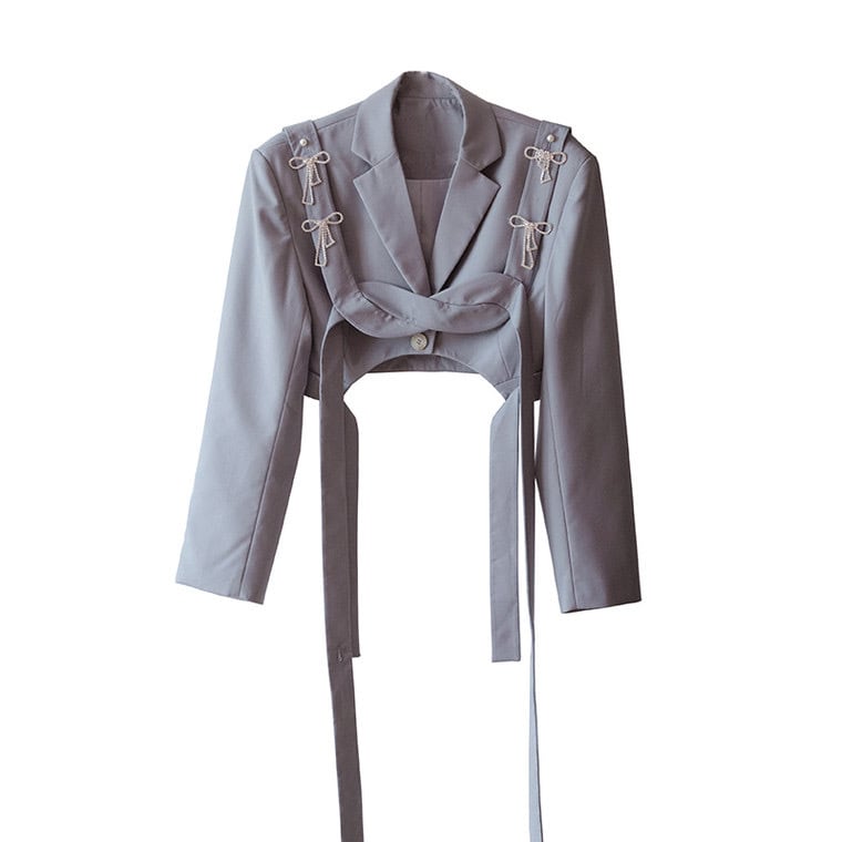 Jnylon Studios Gray deformed ribbon short length tailored jacket