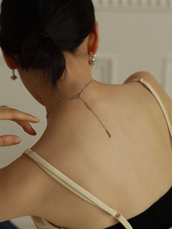 細く繊細なチェーンにシルバーのモチーフがついています。