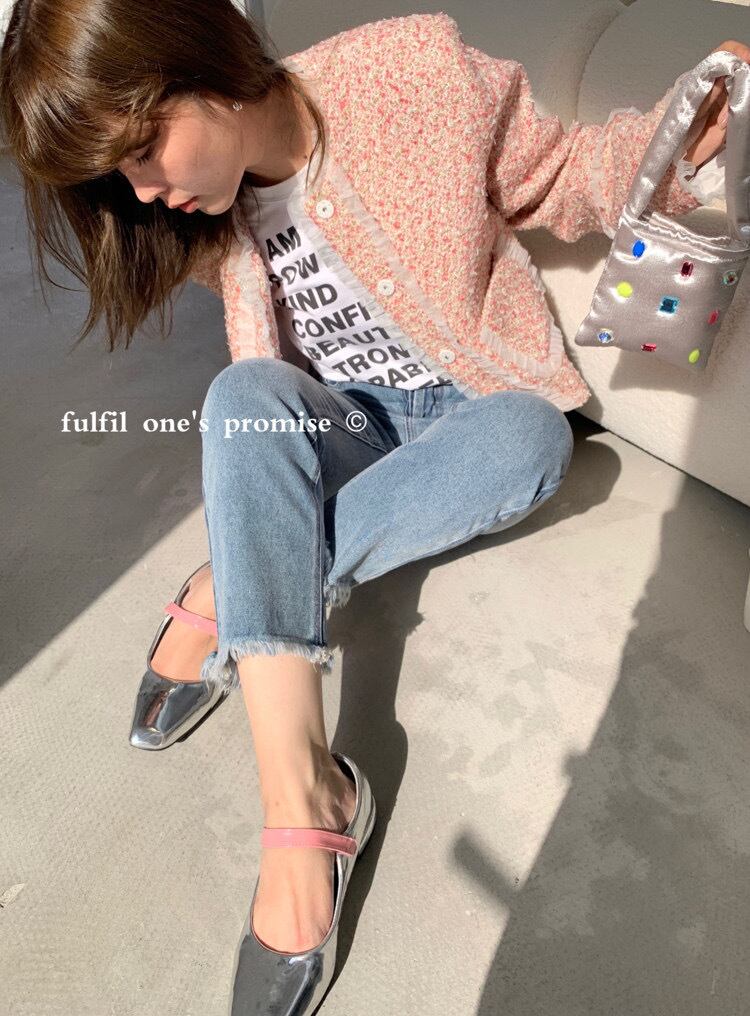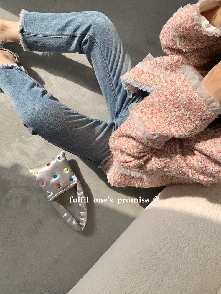 ピンクミックスのツイードとフリルデザインがフェミニンな一点。
