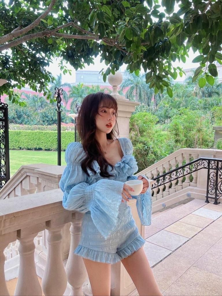 胸元のフリルや大きく広がったベルスリーブのお袖など、立体感のあるデザインがガーリーで可愛い一点。