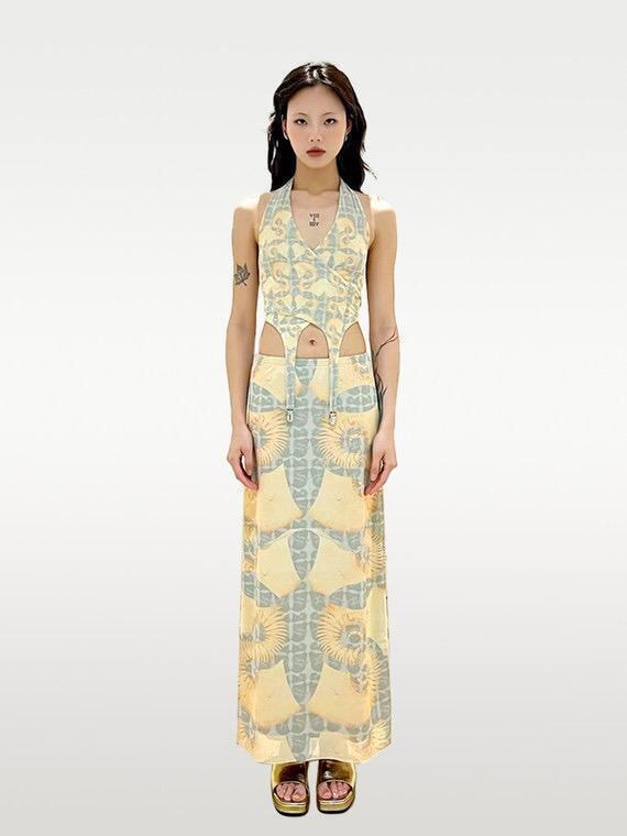 Tropiceye Geometric Long Skirt Tight Stretch Sheer