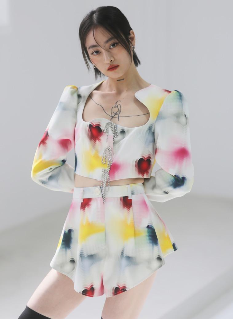 JNYLON STUDIOS Heart pattern deformed jacket short length ribbon