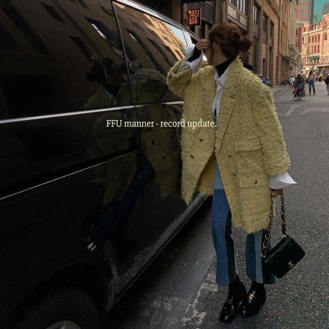 FulfilForU Shaggy tweed French long jacket coat