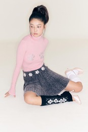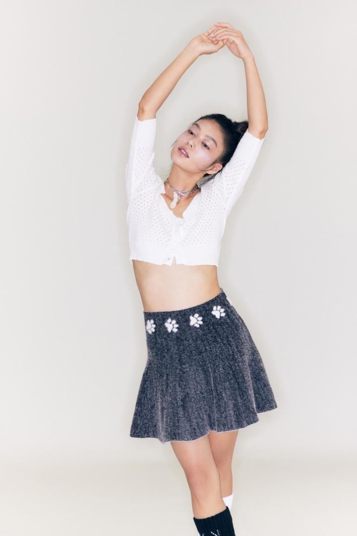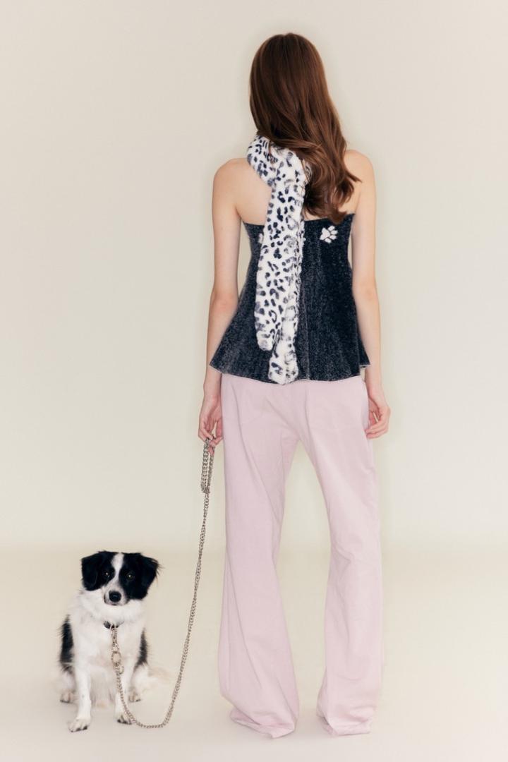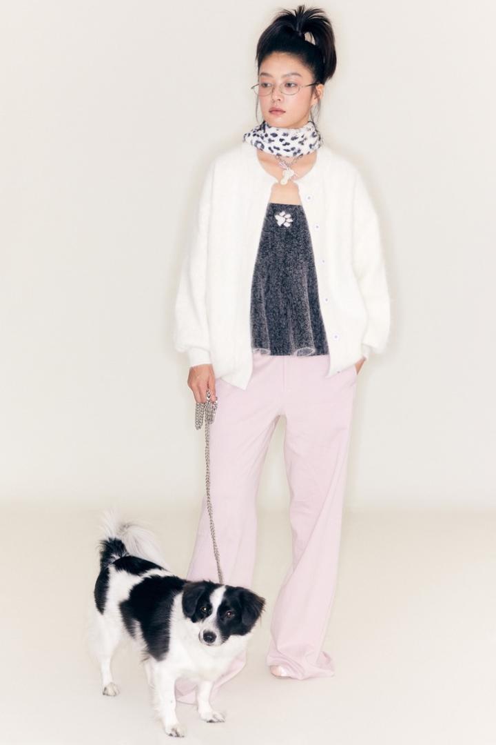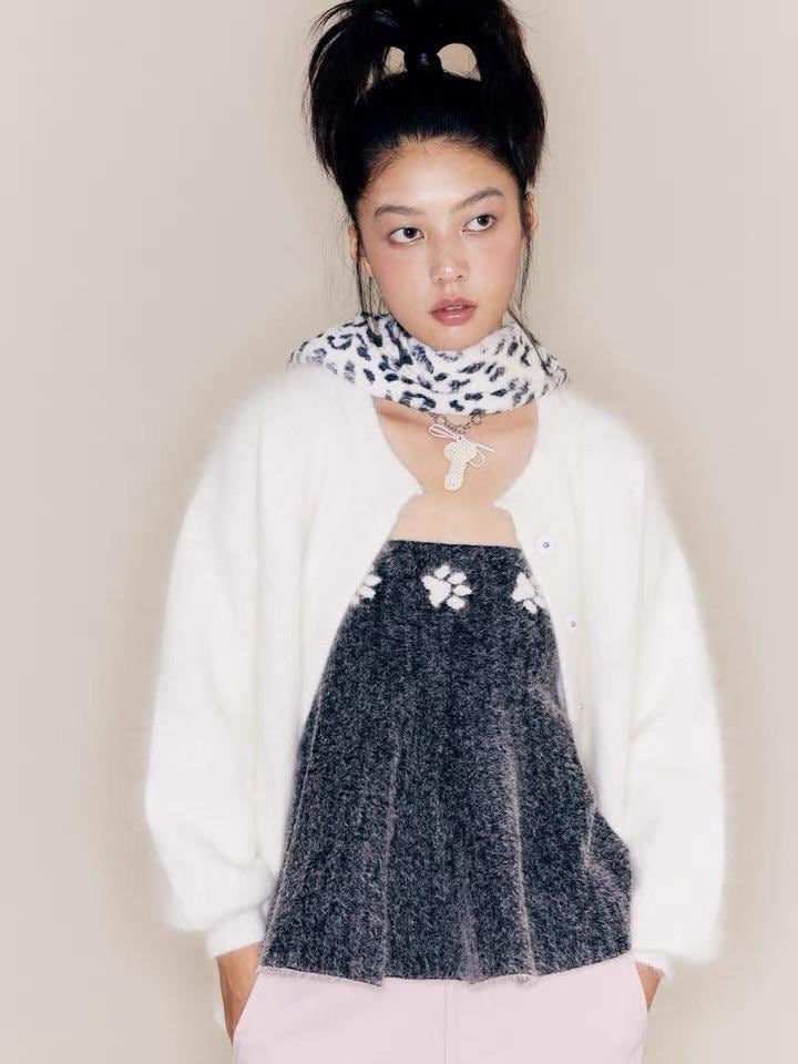 シャギーな質感に犬の足跡の柄が可愛い印象の一点。
