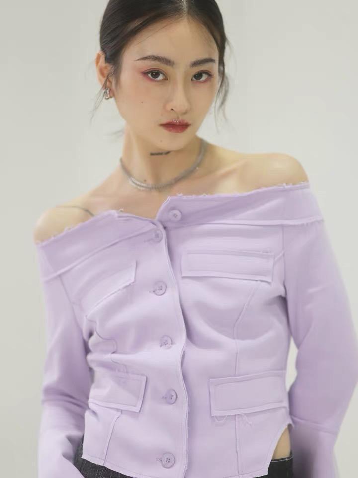 淡いパープルのお色味がコーディネートのアクセントになる一点です。