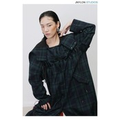 チェック柄にAラインのオーバーなシルエットが可愛いコート。