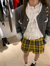 身頃の段になったコットンレースが華やかで可愛らしい一点。