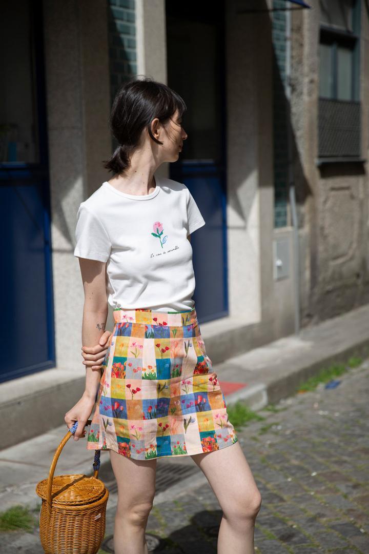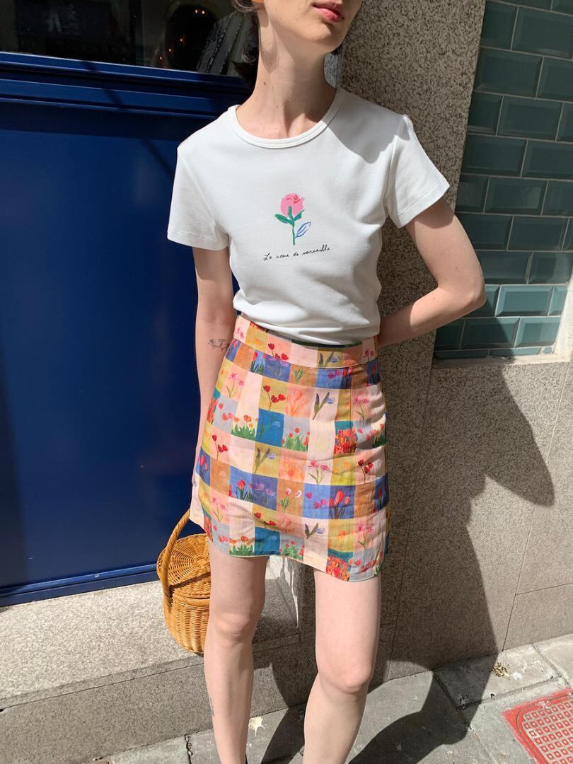 KERNELCOSMOS Linen colorful tulip pattern trapezoid skirt