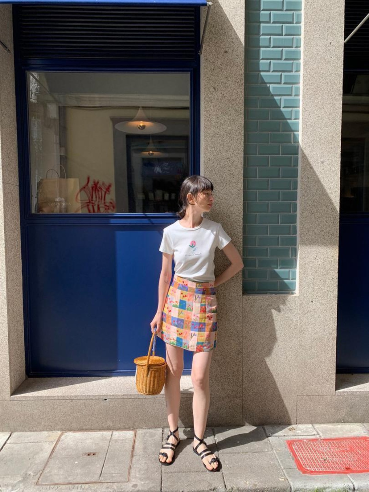 カラフルな配色にチューリップの柄がガーリーで可愛い一点。