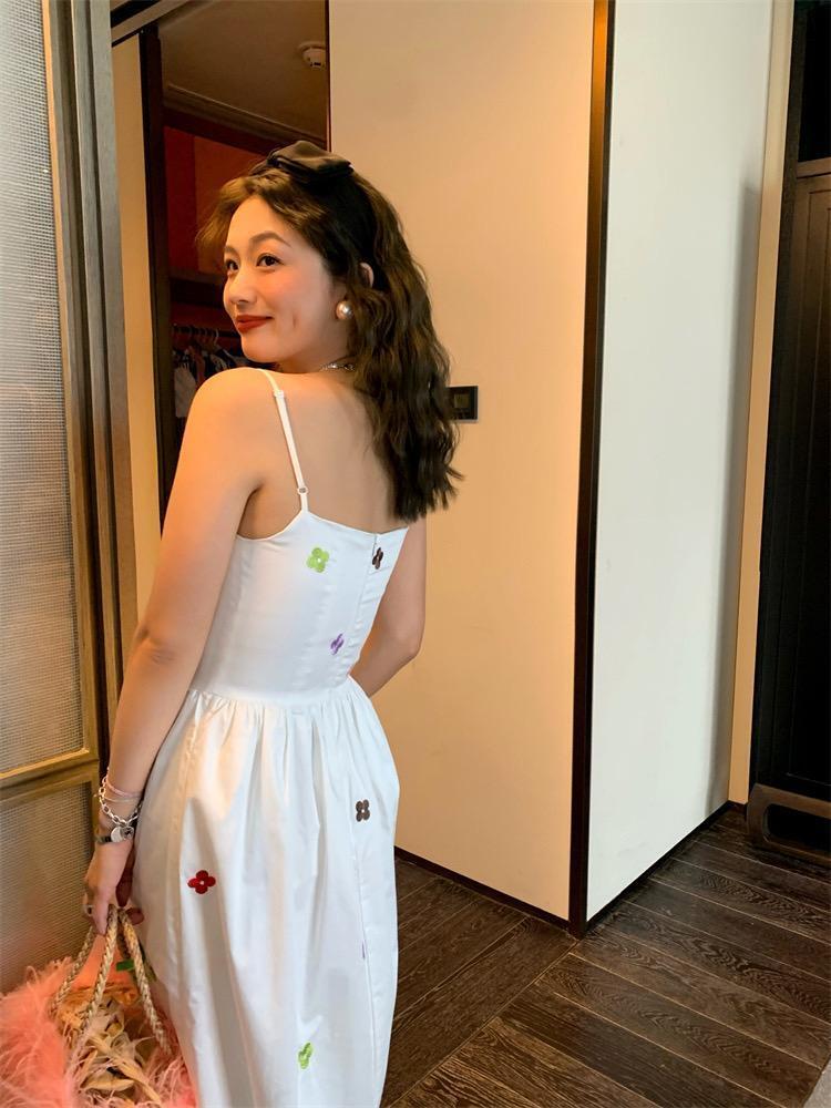 LUOLUOJUANJIE Flower x Ribbon Camisole Dress White