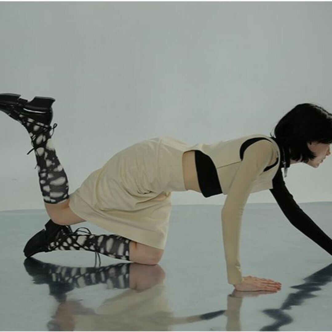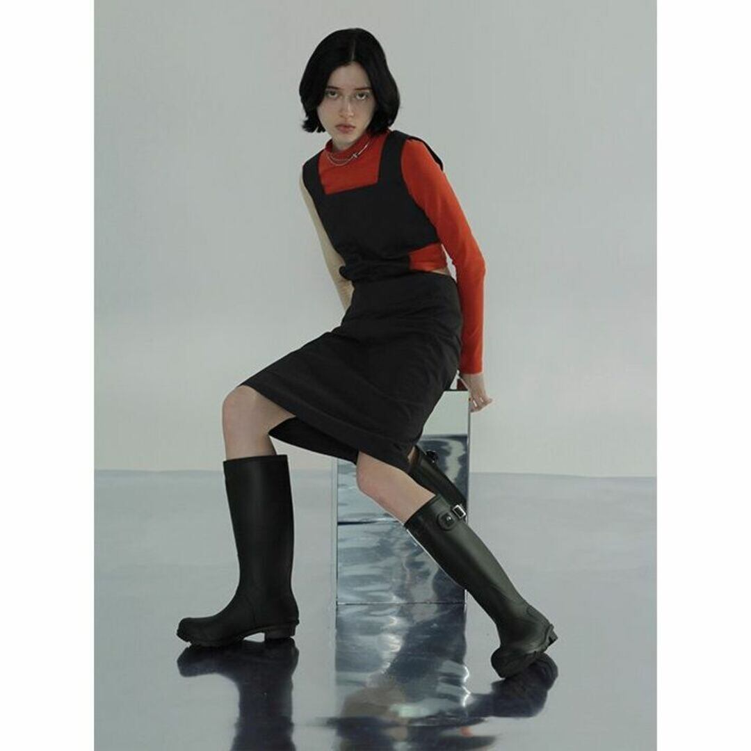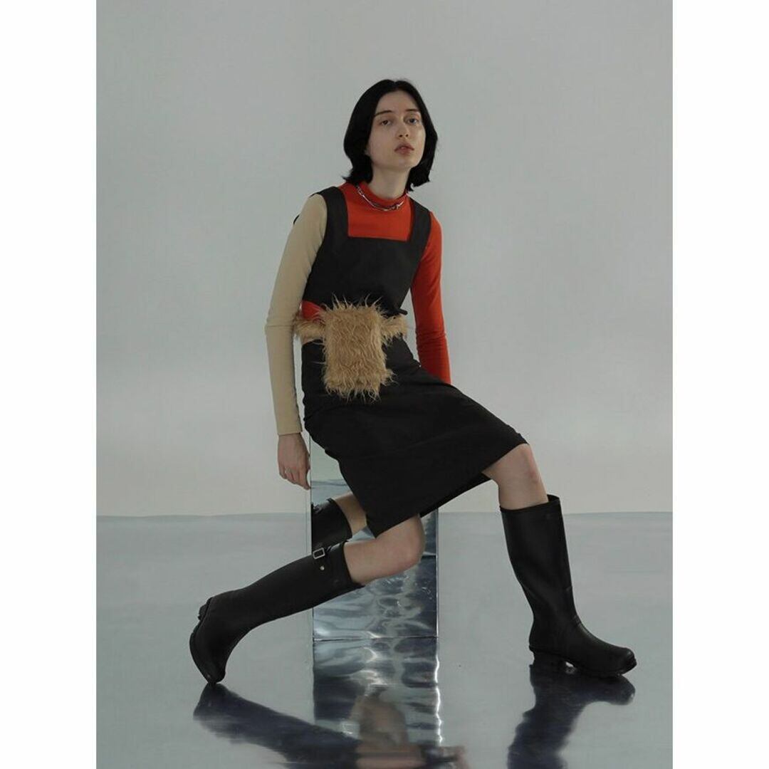 ウエストが大きくカットされたデザインがモード感のあるワンピース。