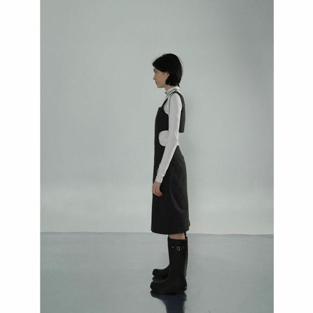 前後どちらを前にしても着用できます。広がりすぎないシルエットが大人な印象。