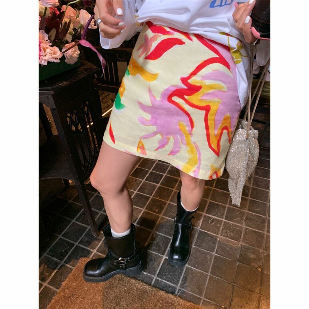 LUOLUOJUANJIE Retro Paint Print Mini Trapezoidal Skirt