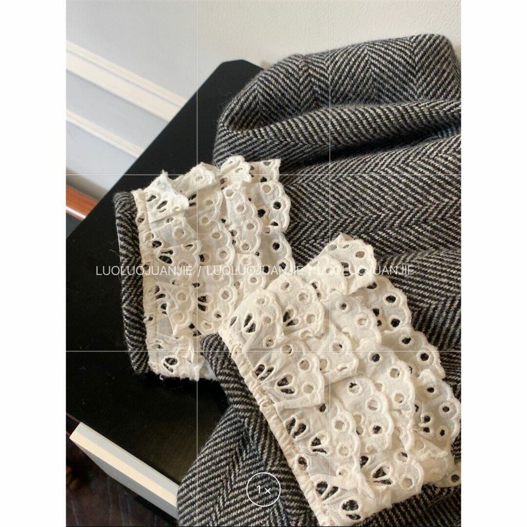 LUOLUOJUANJIE Lace herringbone tweed gray jacket