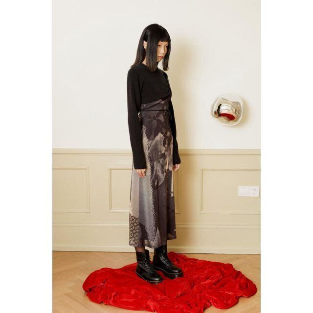 斜めにカットされた裾や、ぐるりと巻けるリボンのデザインが個性的。