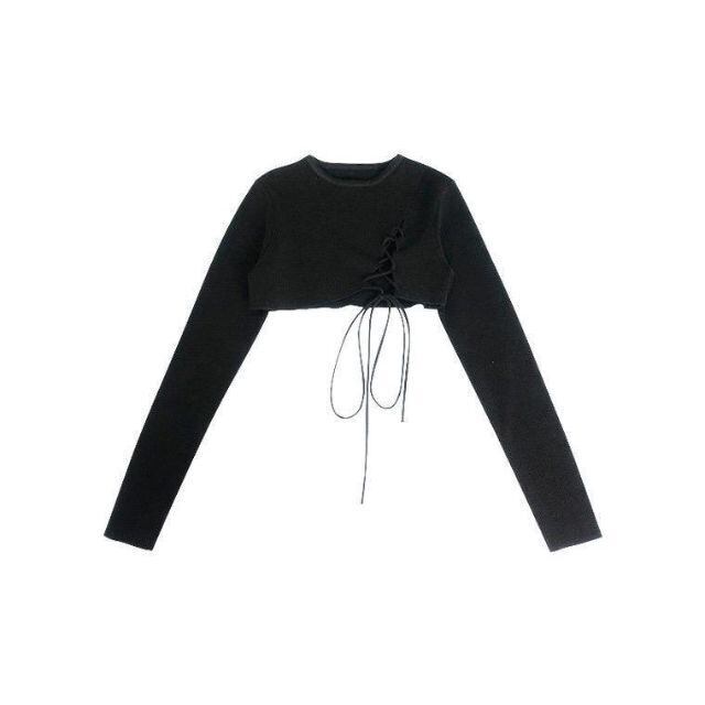 クロップド丈でカットが入ってるのでTシャツやブラウス、ワンピースなどとのレイヤードスタイルがおすすめです。