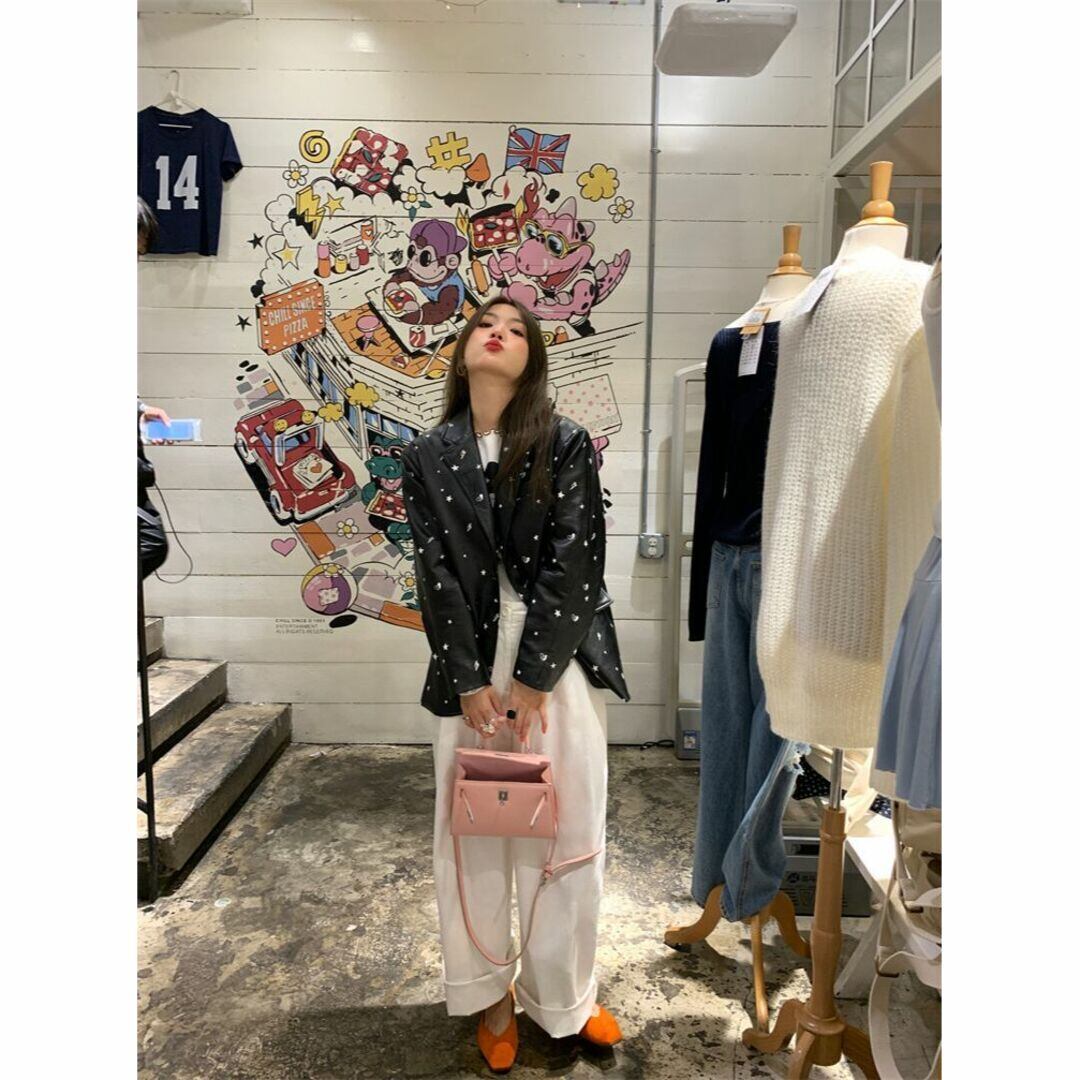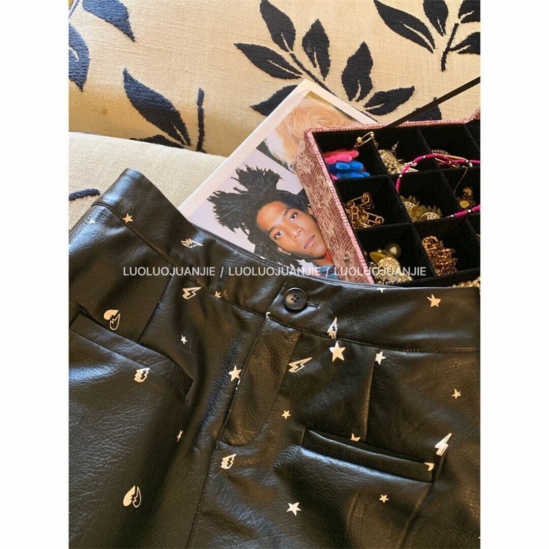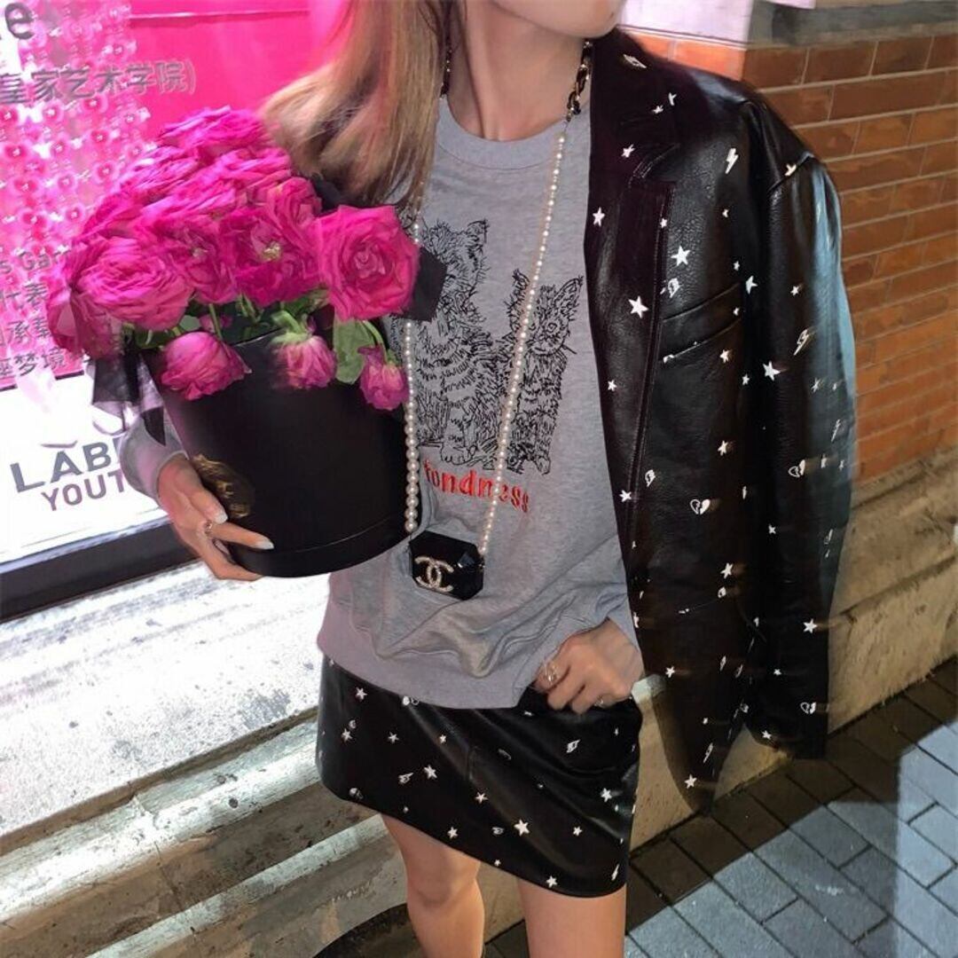 LUOLUOJUANJIE Star lightning print eco-leather tailored jacket