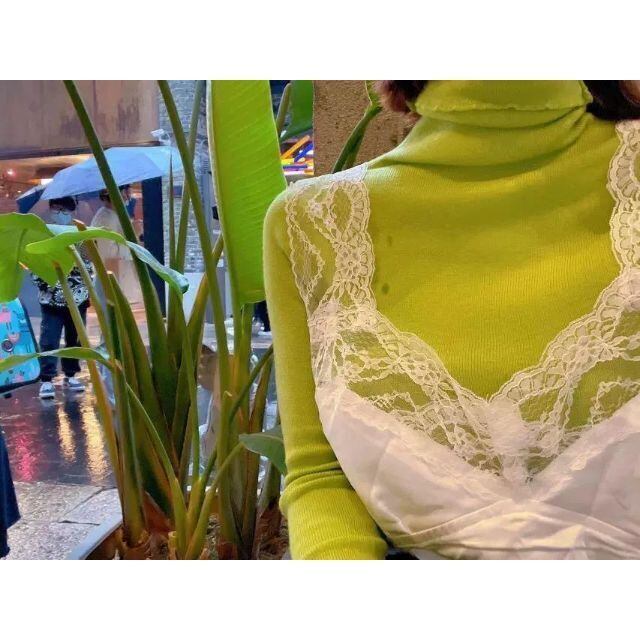 Color turtleneck simple cotton rib knit high gauge