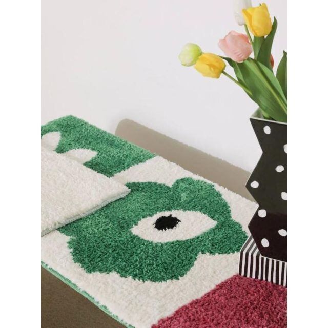 3つ並んだユニークな柄と、カラフルなカラーリングが可愛いラグ。