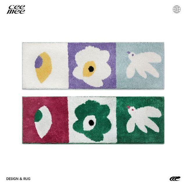 ceemee ラグ 花 Flower Bird Pattern Square Rug Mat Rectangle