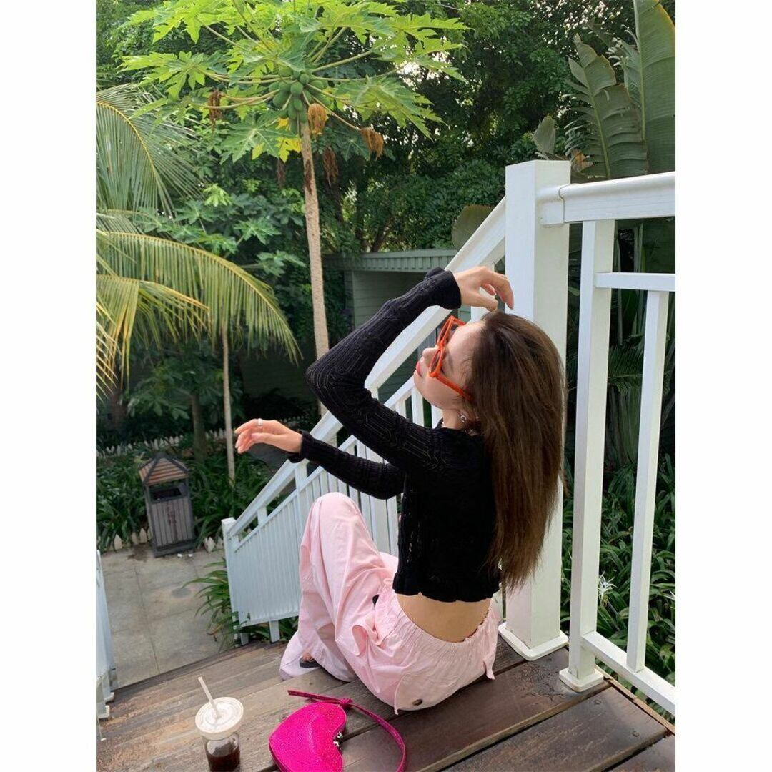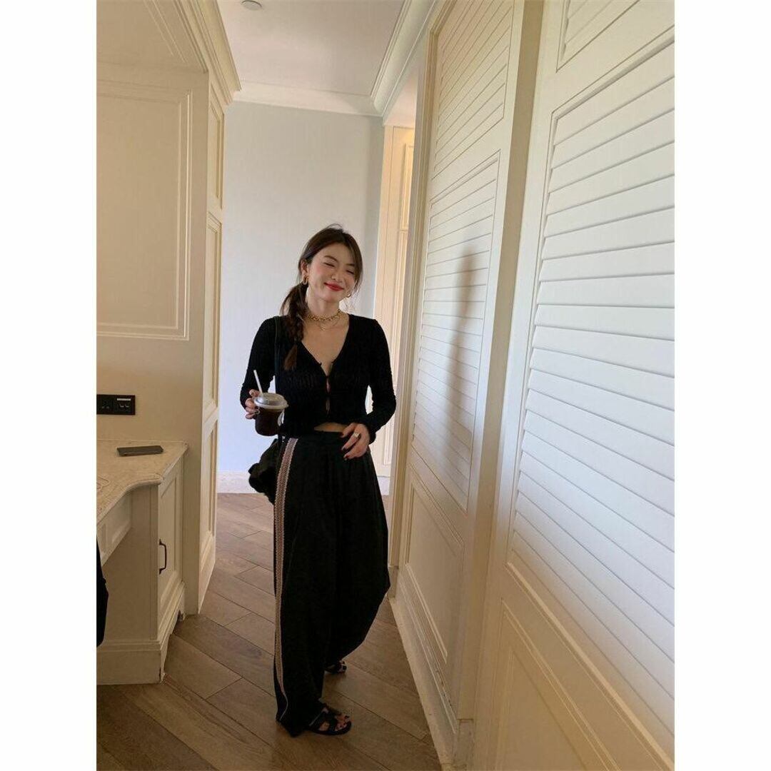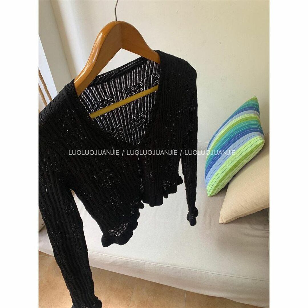 LUOLUOJUANJIE Black ruffle cropped knit cardigan