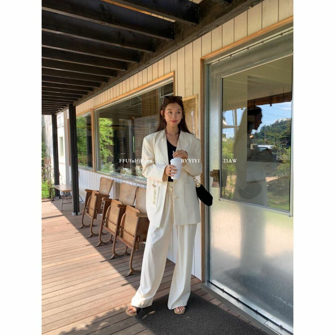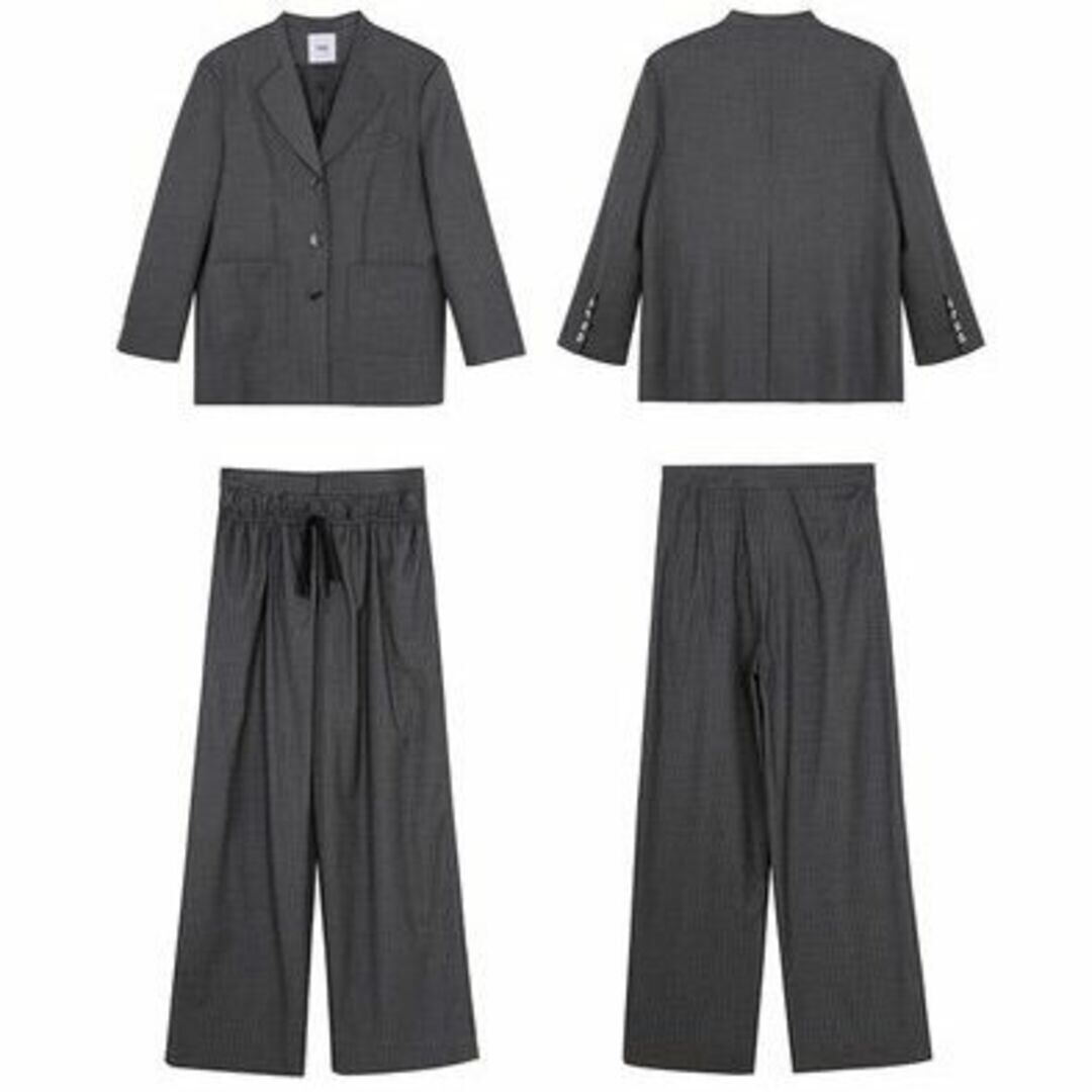 襟のデザインが特徴的な、オーバーなゆったりとしたシルエットのジャケット。