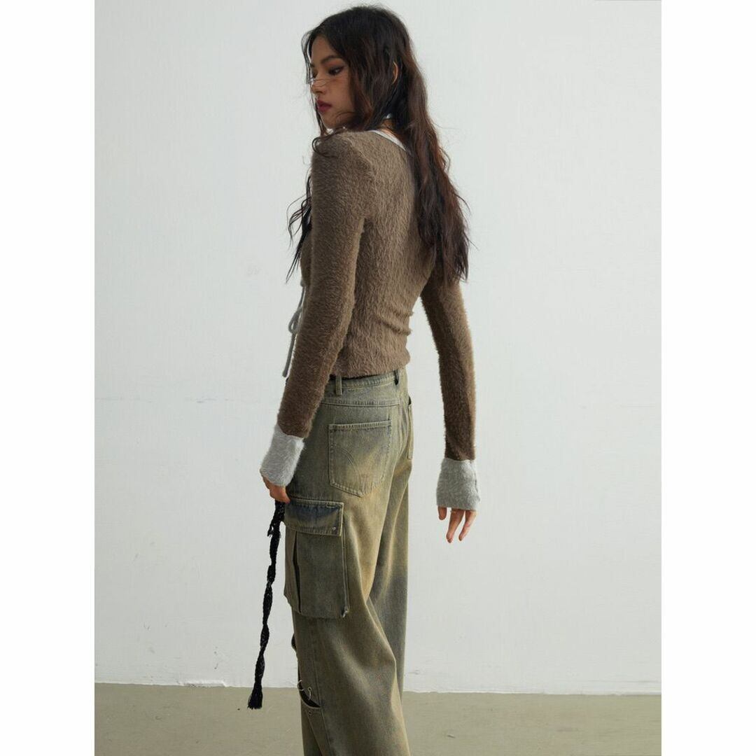 Jnylon Studios Shaggy ribbon tight-knit cardigan