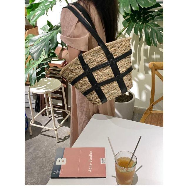 カゴの風合いにエコレザーの持ち手がアクセントに。