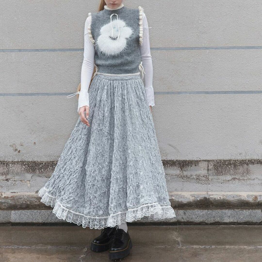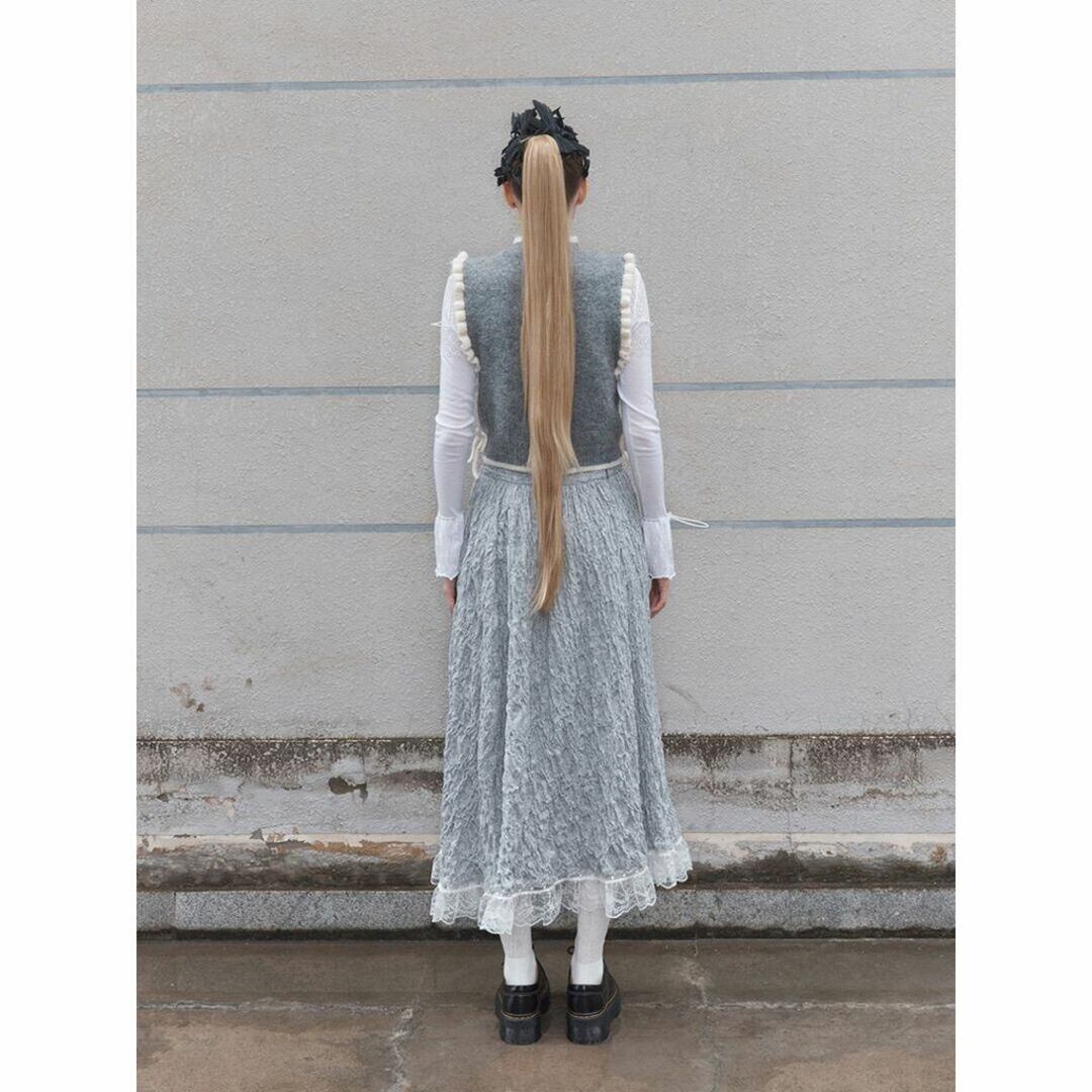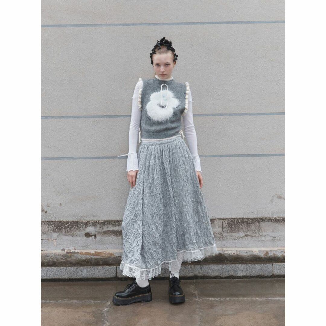 ニュアンス感のある生地とレースがフェミニンで可愛いスカート。