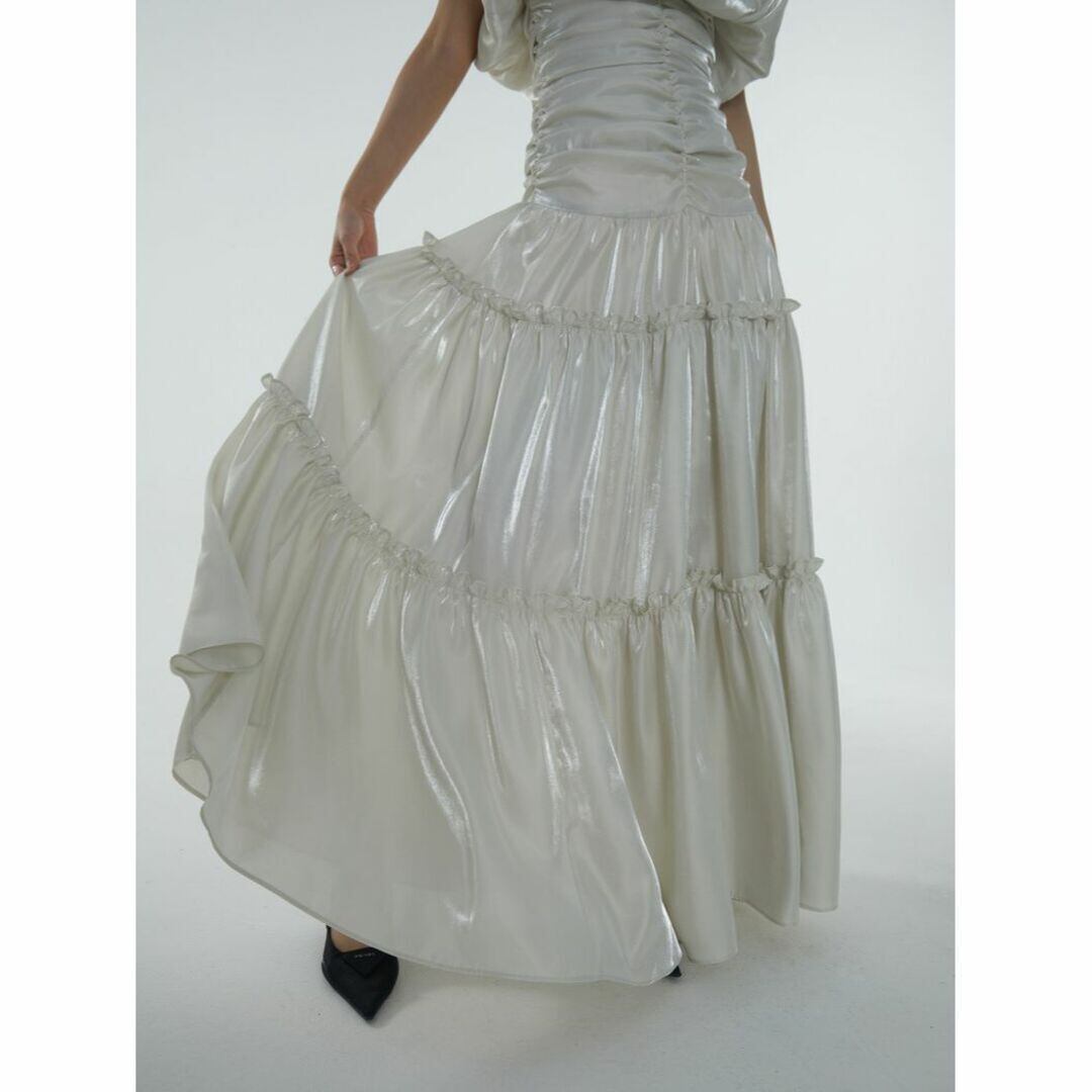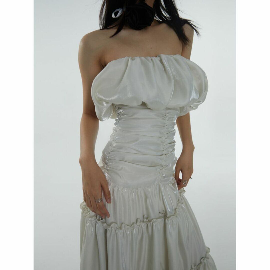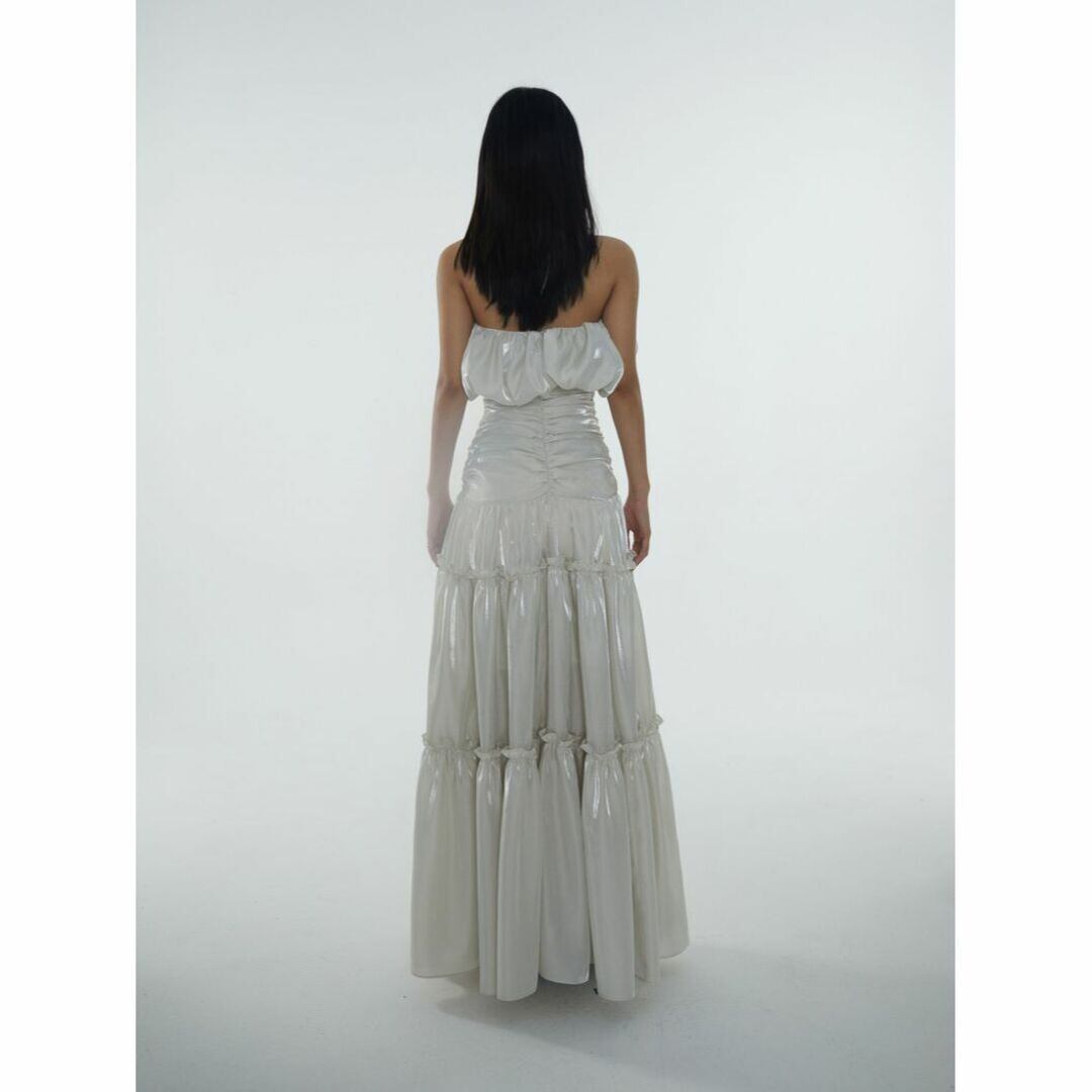 ギャザーが入りふんわりとしたシルエットにスーパーロング丈が素敵なドレス。