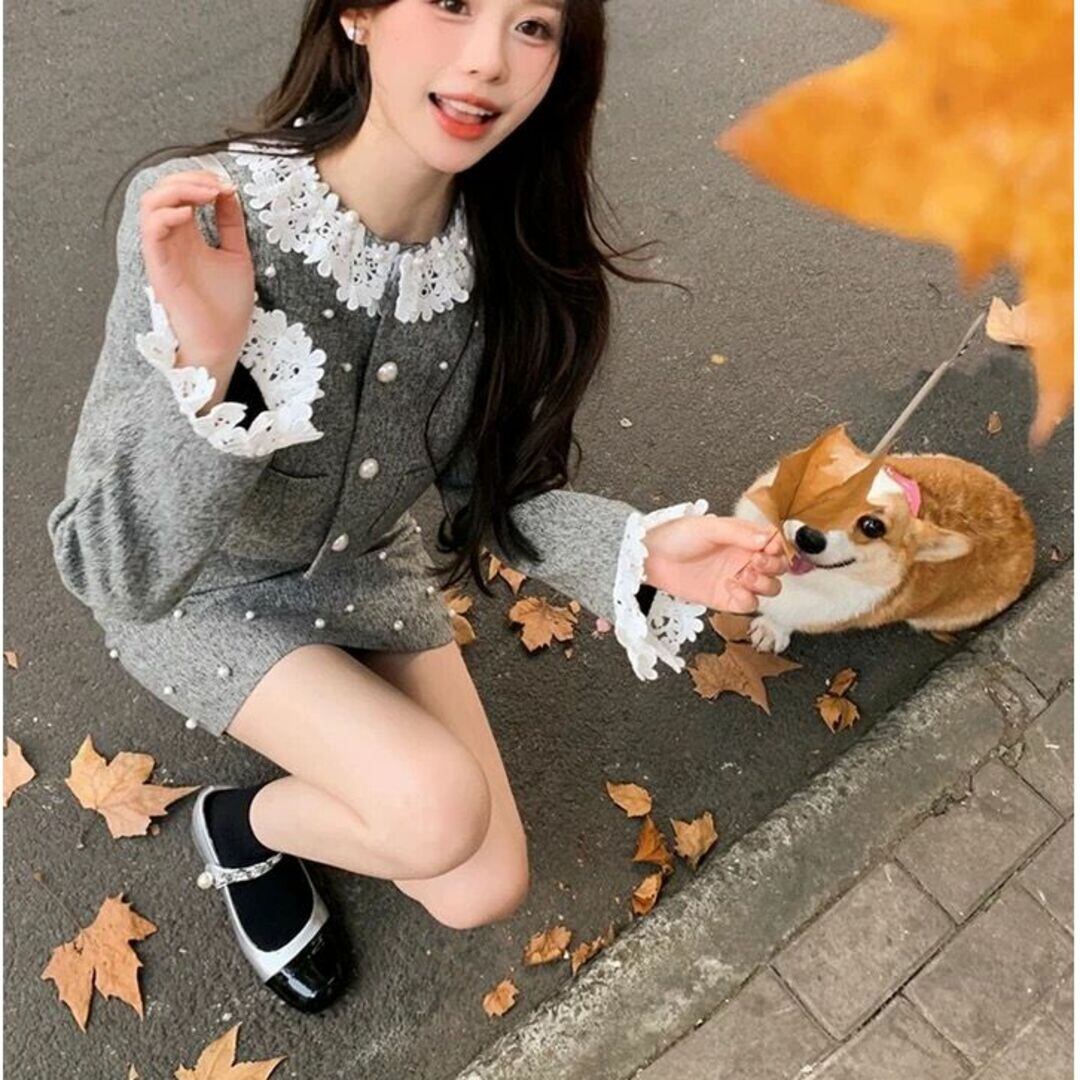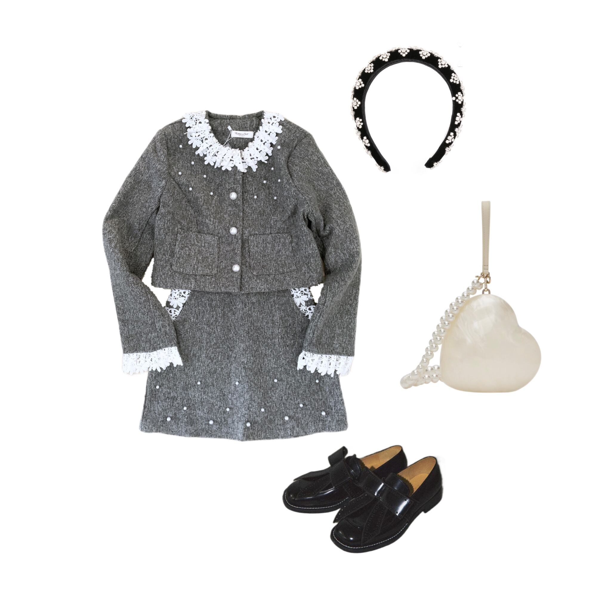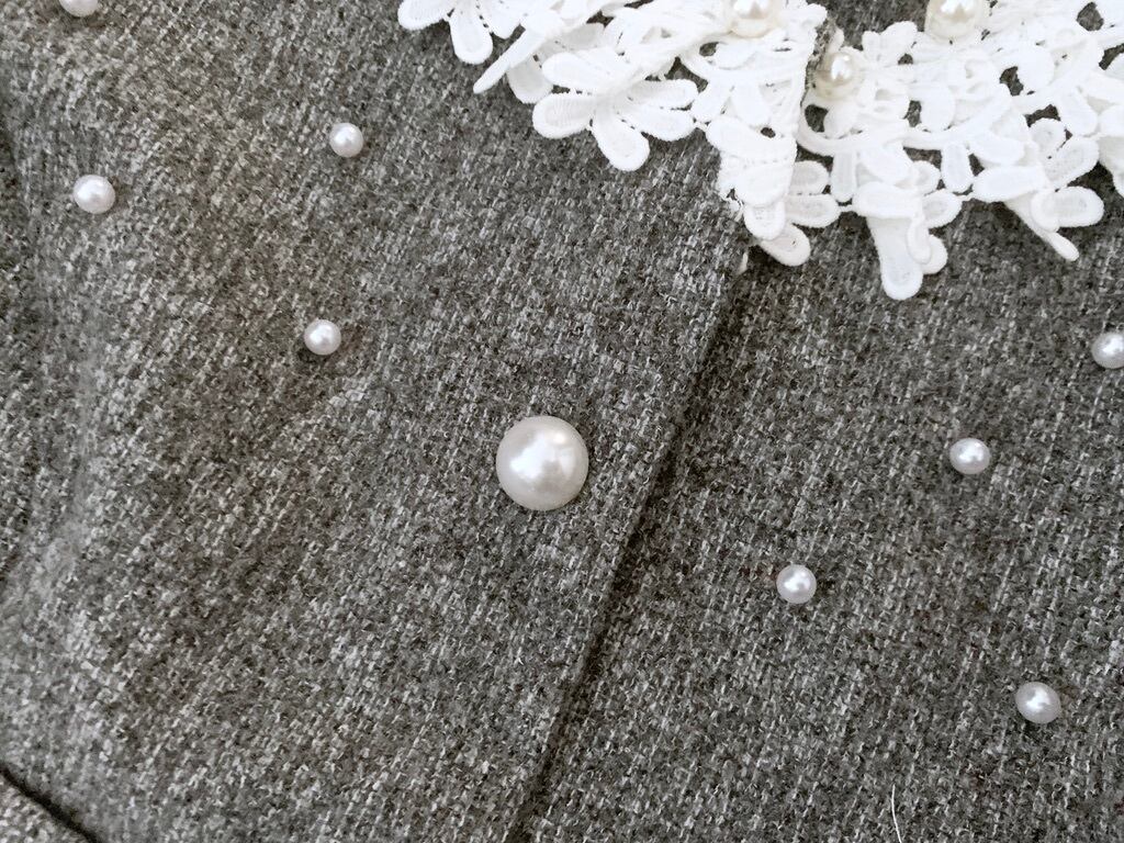 フラワーモチーフのレースや、パールのデザインがガーリーで可愛いジャケット。