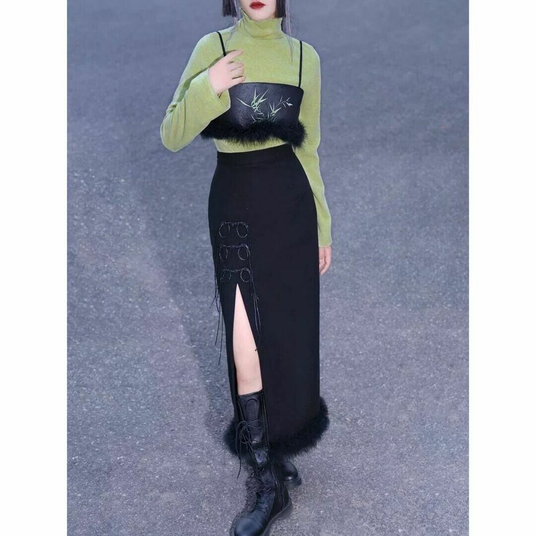 云鬓斜簪 Oriental embroidery fur chinese style camisole tops