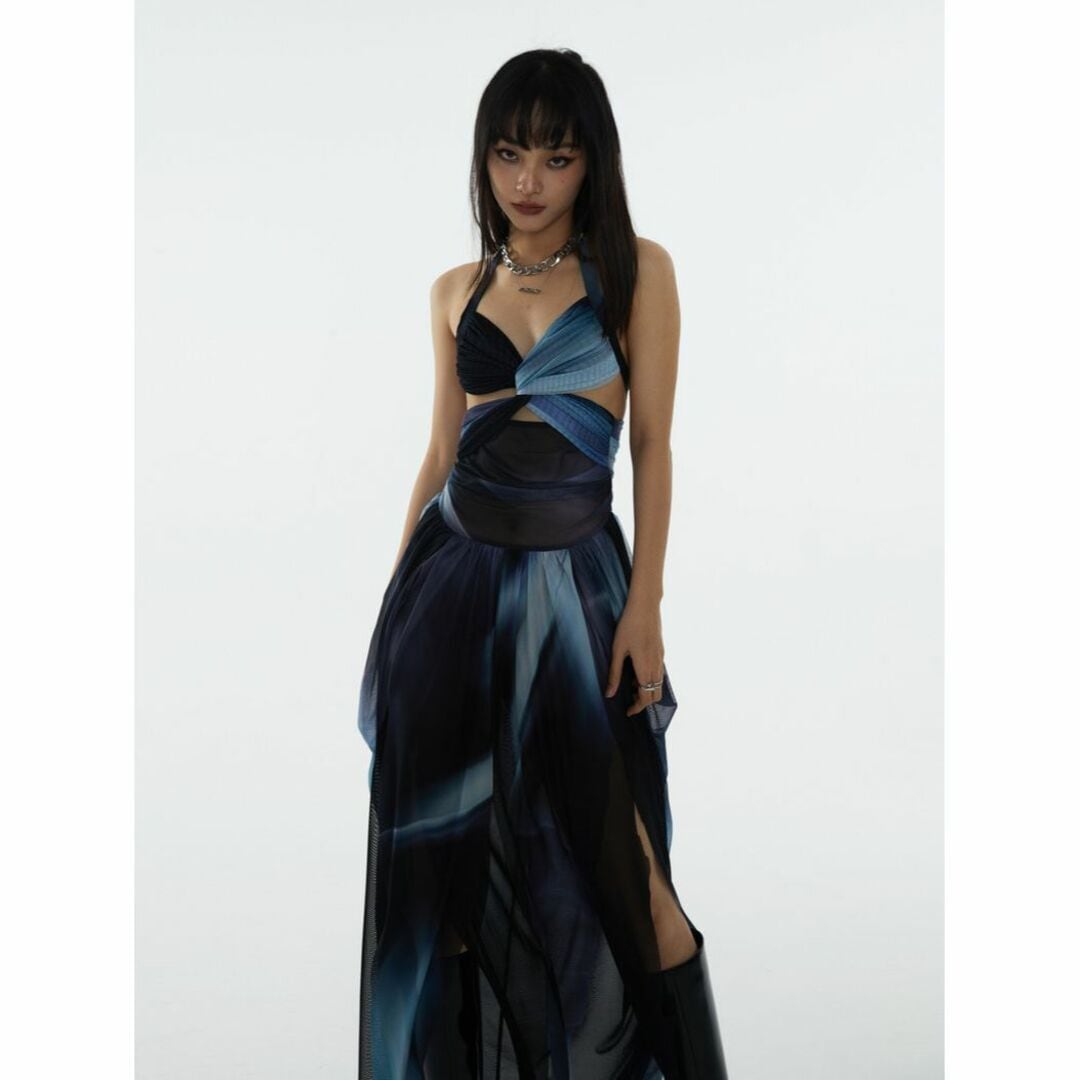 JnylonStudios Gradient sheer cross slit long dress