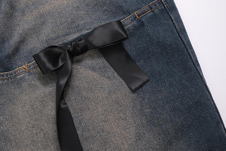 メンズライクなワイドなシルエットにリボンのバランスが可愛いデニムパンツ。