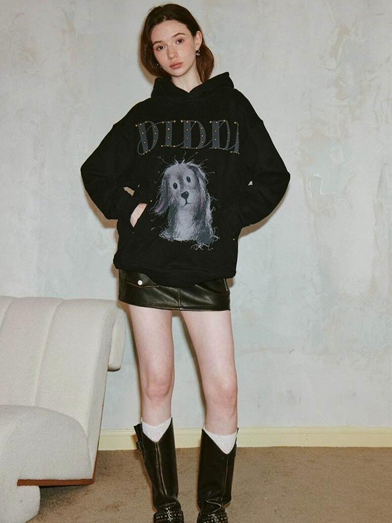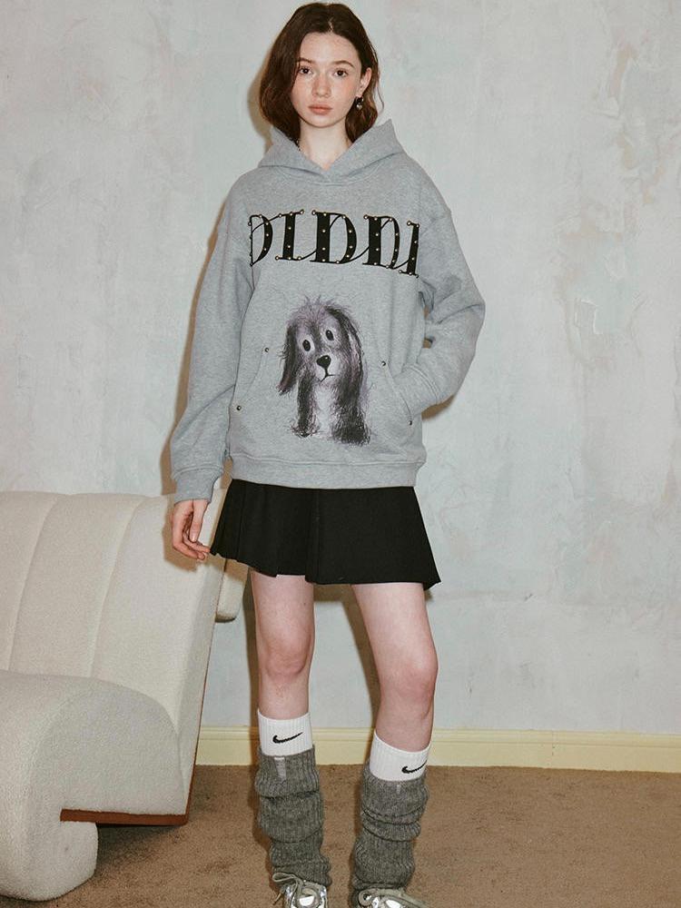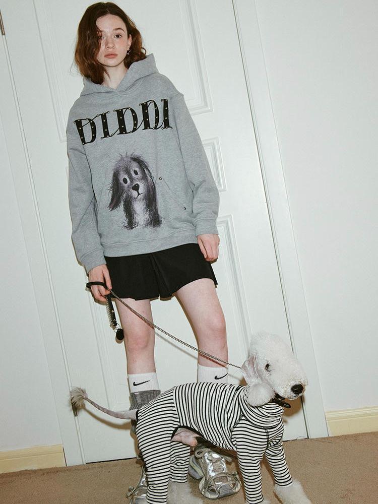 DIDDI MODA スウェット パーカー レトロ 犬柄 オーバー フーディー