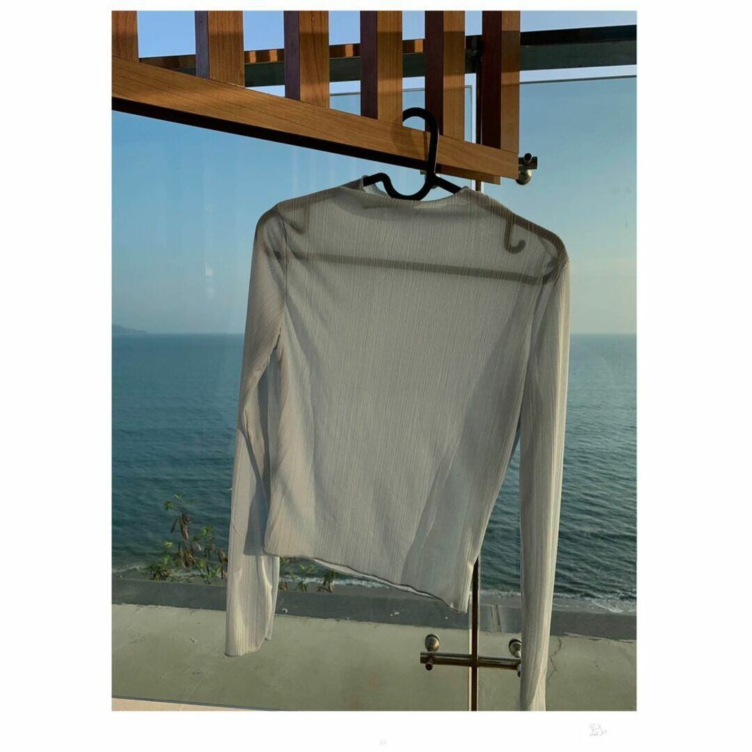 Bgoood シアー カットソー ライトブルー コンパクト 透け感