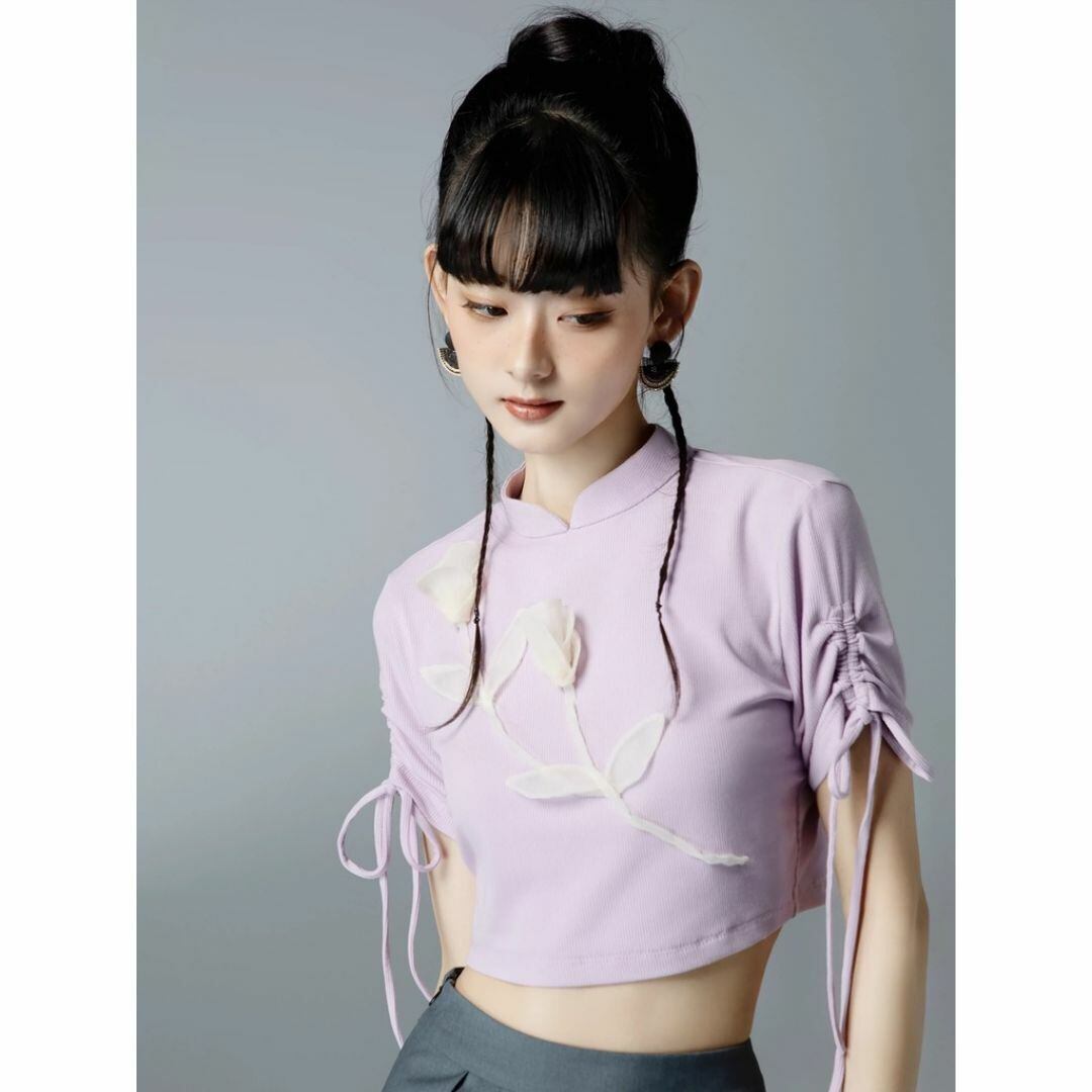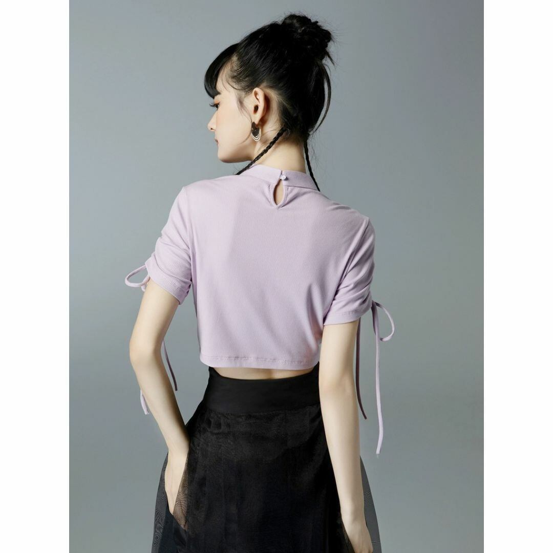 TE チャイナ Tシャツ リブニット チューリップ シャーリング 半袖