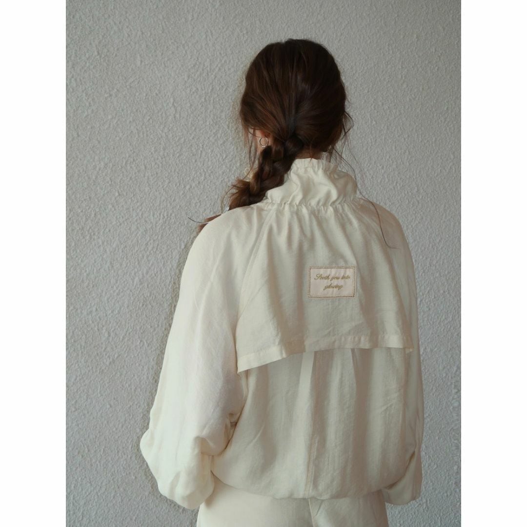 内側の繊細なレースやリボン、ふんわりとした丸いシルエットがガーリーなナイロンジャケット。UPF50+で紫外線カット効果もあり、夏のレジャーの羽織にもおすすめです◎