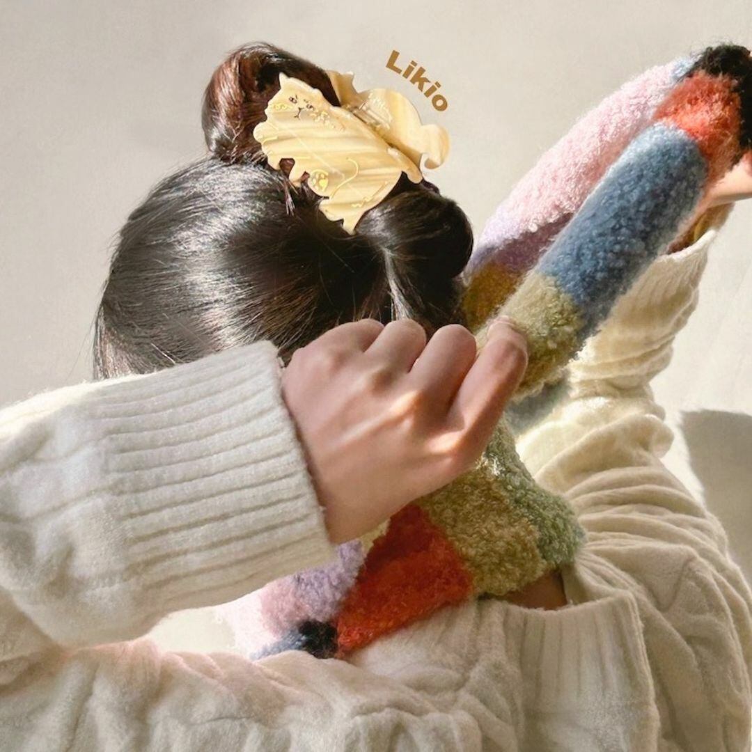Likio 猫 キャット ヘアクリップ グレー キャメル マーブル