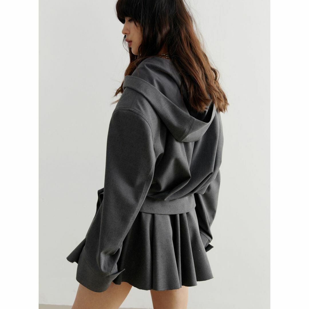 オーバーショルダーに大きなフードがカジュアルながらモードなジャケットです。
