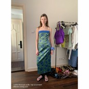 オリエンタルな柄に光沢のあるジャガード生地が素敵なキャミソールワンピース。一枚でも、春や秋にはカットソーやニットを重ねても◎