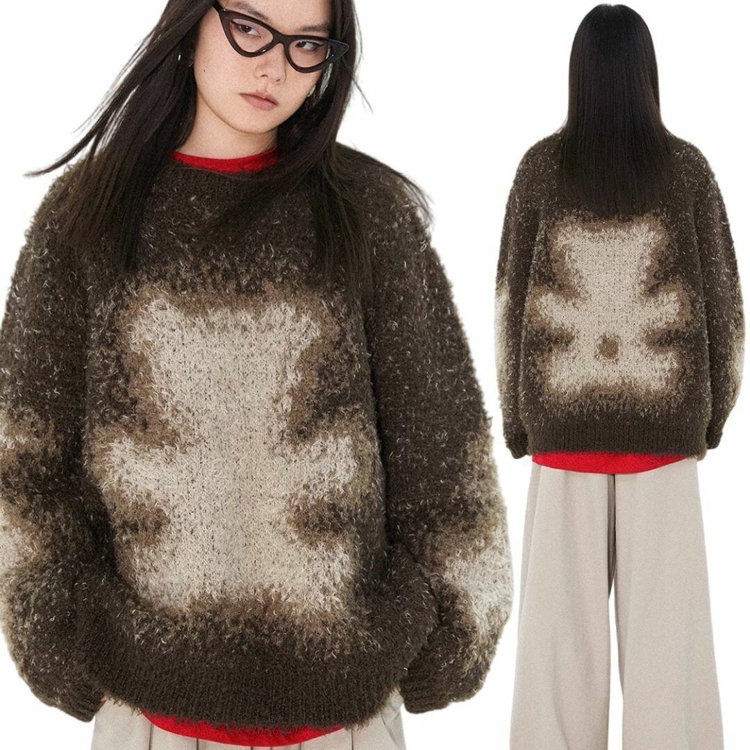 シャギーな質感とくまのシルエットがユニークで可愛いニット。大きめなサイズ感でユニセックスで着用できます◎