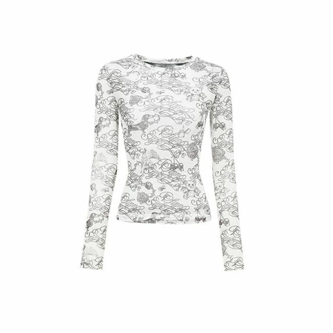 1JINN STUDIO 猫柄 スリムフィット メッシュ カットソー シアー