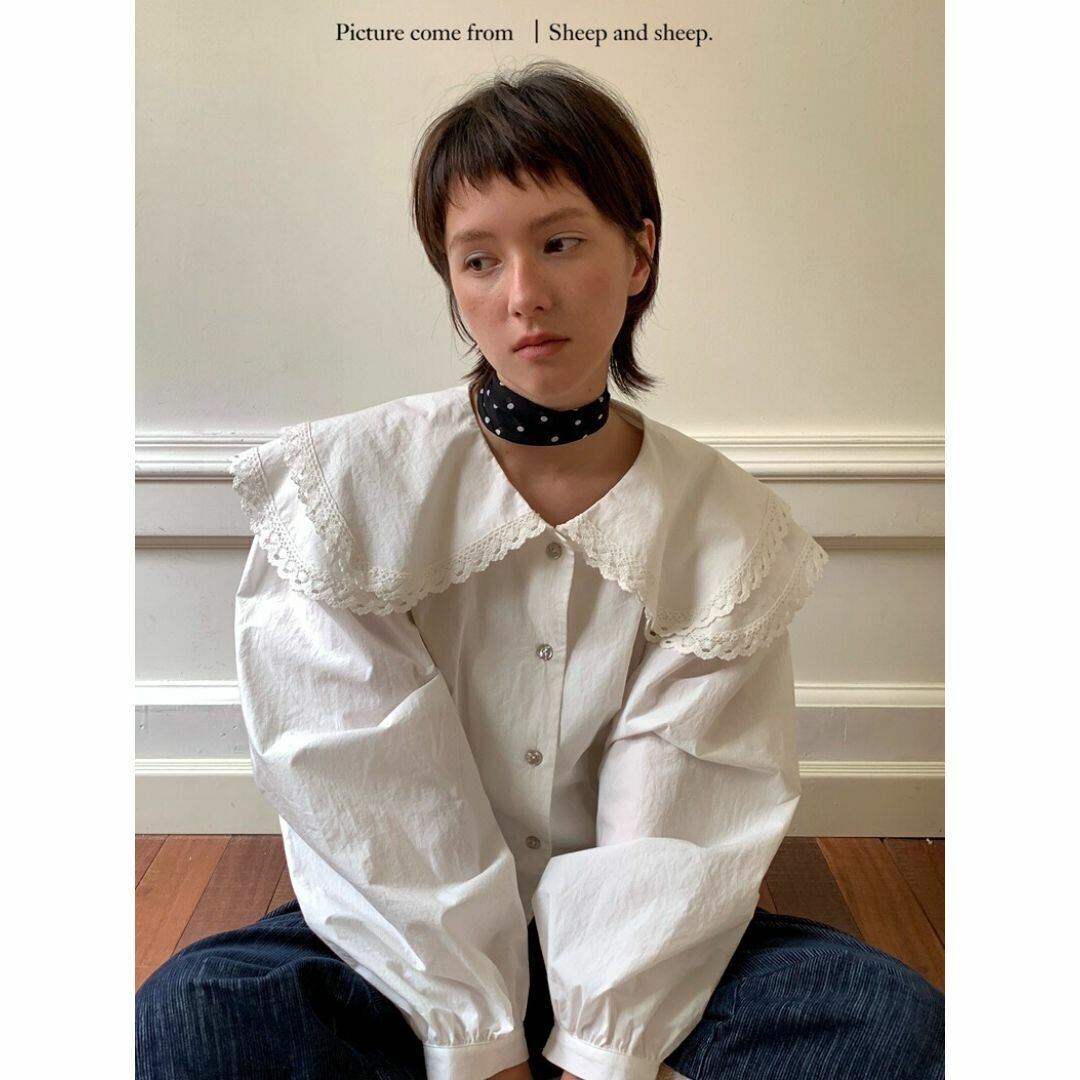 sheep and sheep ビッグカラー パフスリーブ ブラウス ホワイト
