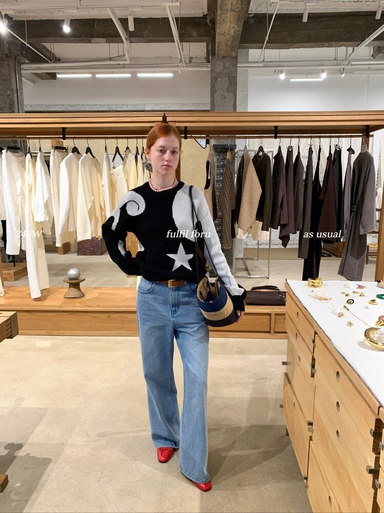 FFU fulfil for u スター柄 オーバー ニット クルーネック 黒