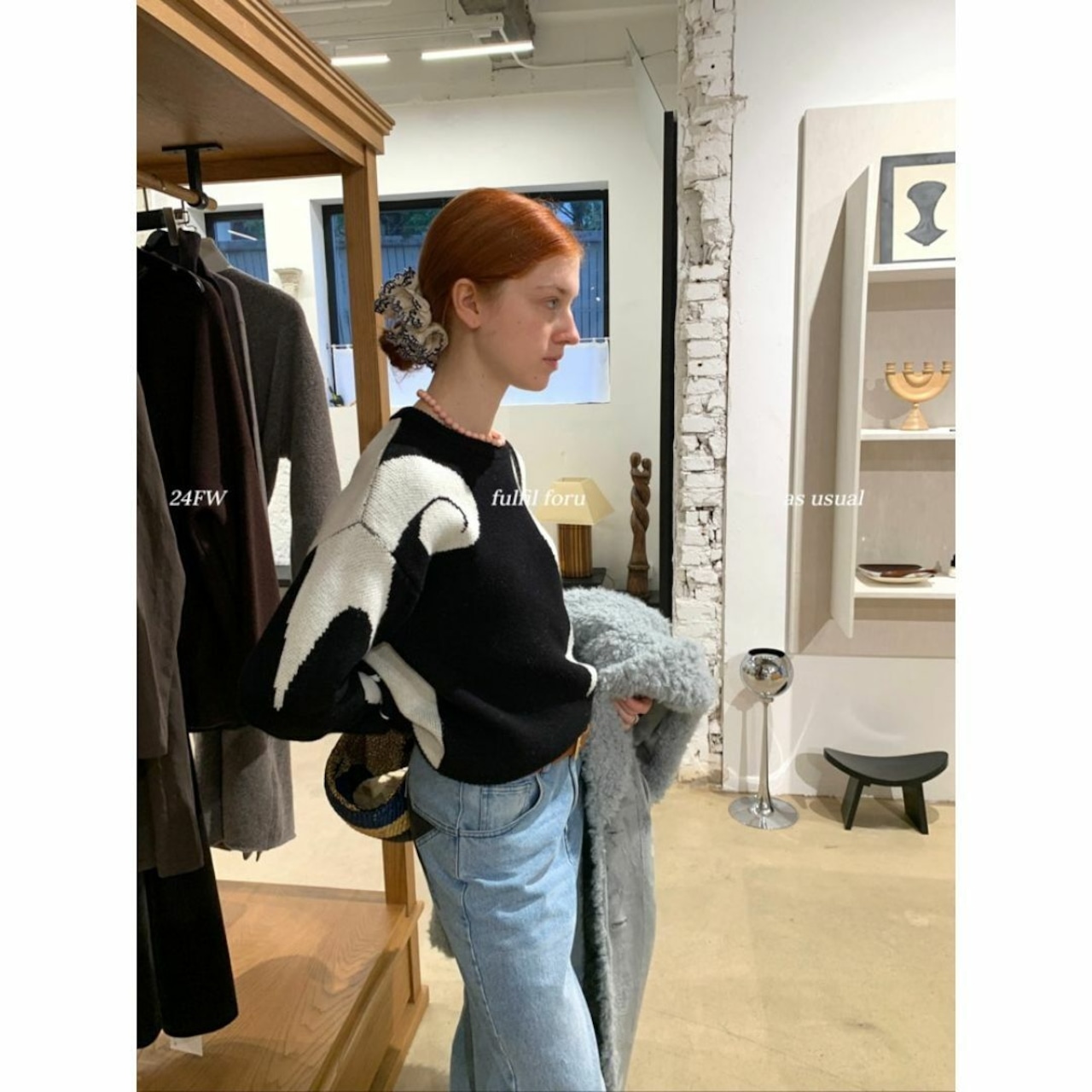 波や星の柄がモダンで素敵なニット。オーバーでざっくりとした風合いがカジュアルに着用できます。