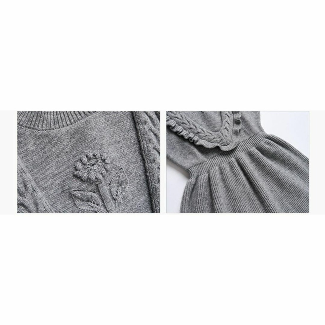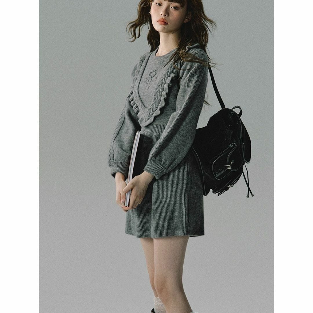 OAKMOO フリル パフ ニット ミニワンピース フレア グレー 花柄
